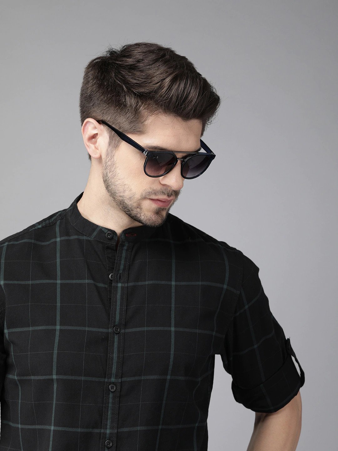Men Black & Green Regular Fit Checked Casual Shirt