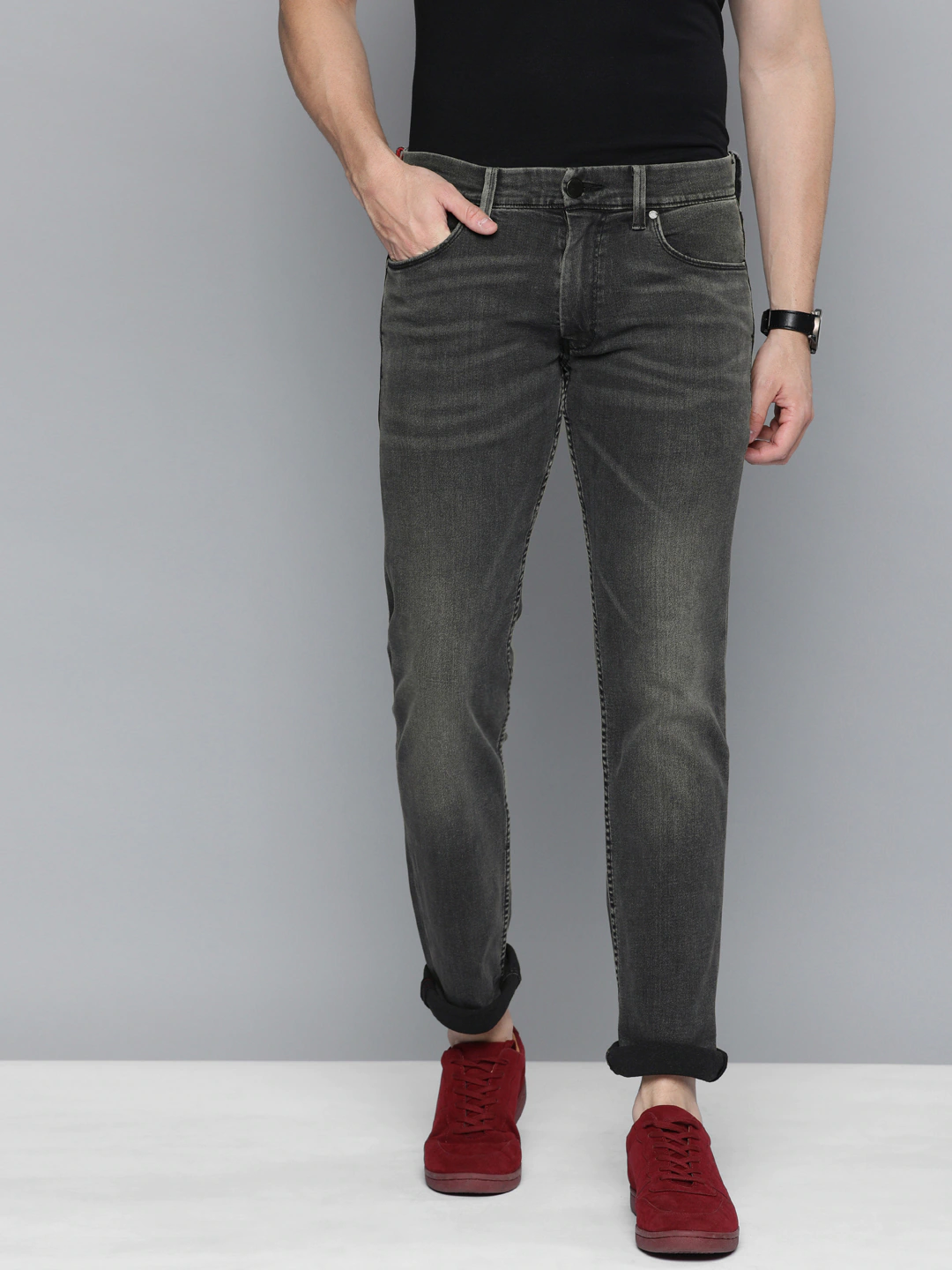 Men Grey Skinny Fit Mid-Rise Clean Look Jeans