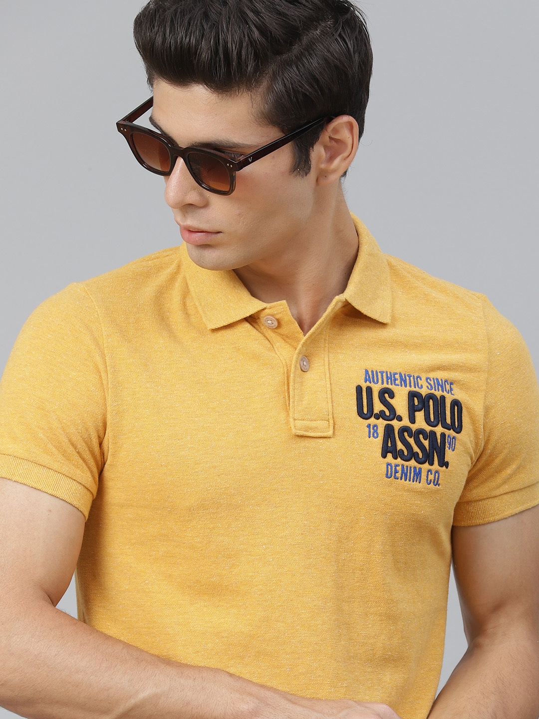 Men Mustard Yellow Brand Logo Polo Collar T-shirt