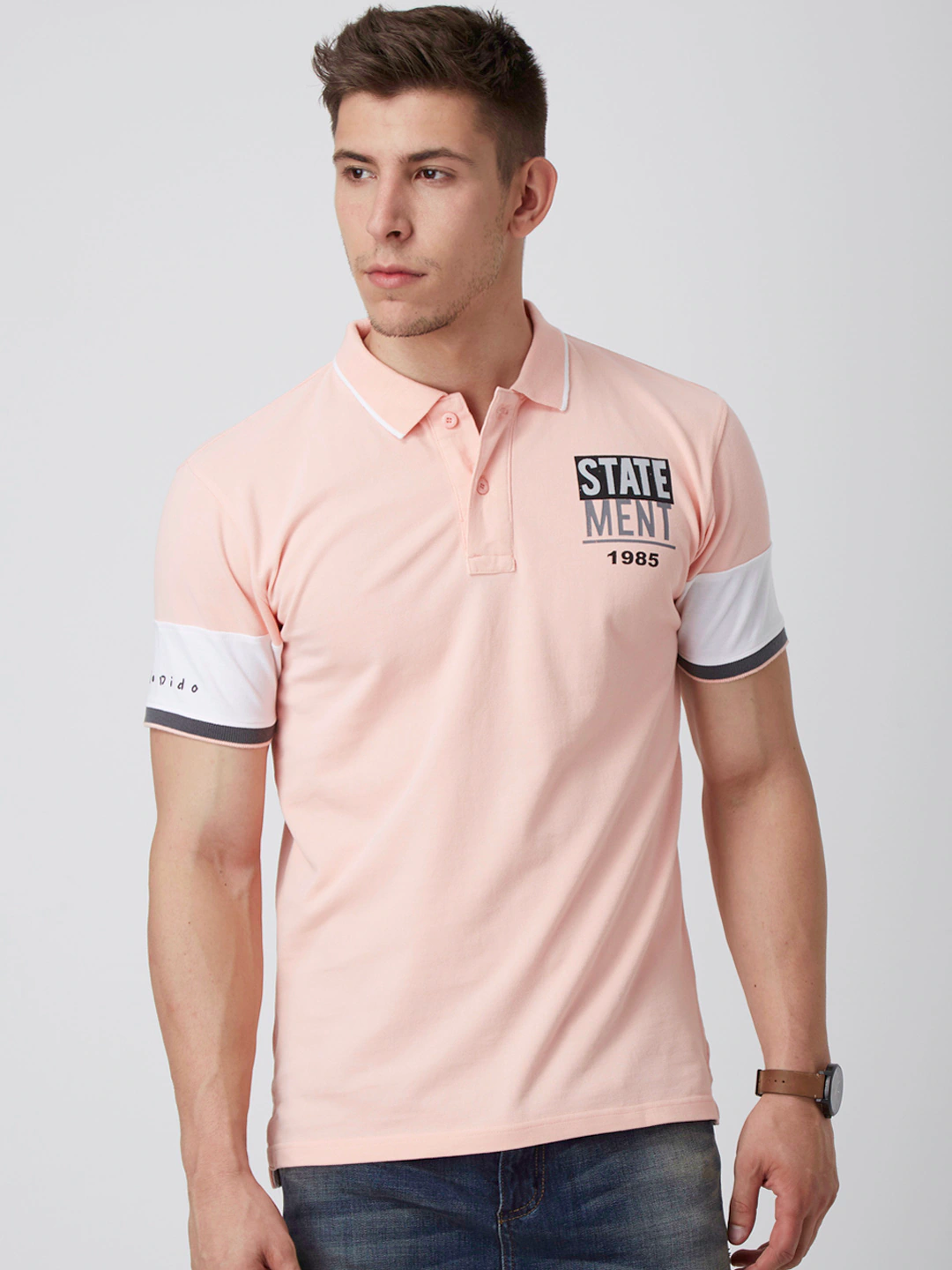 Men Light Pink Solid Polo Collar Slim Fit T-shirt