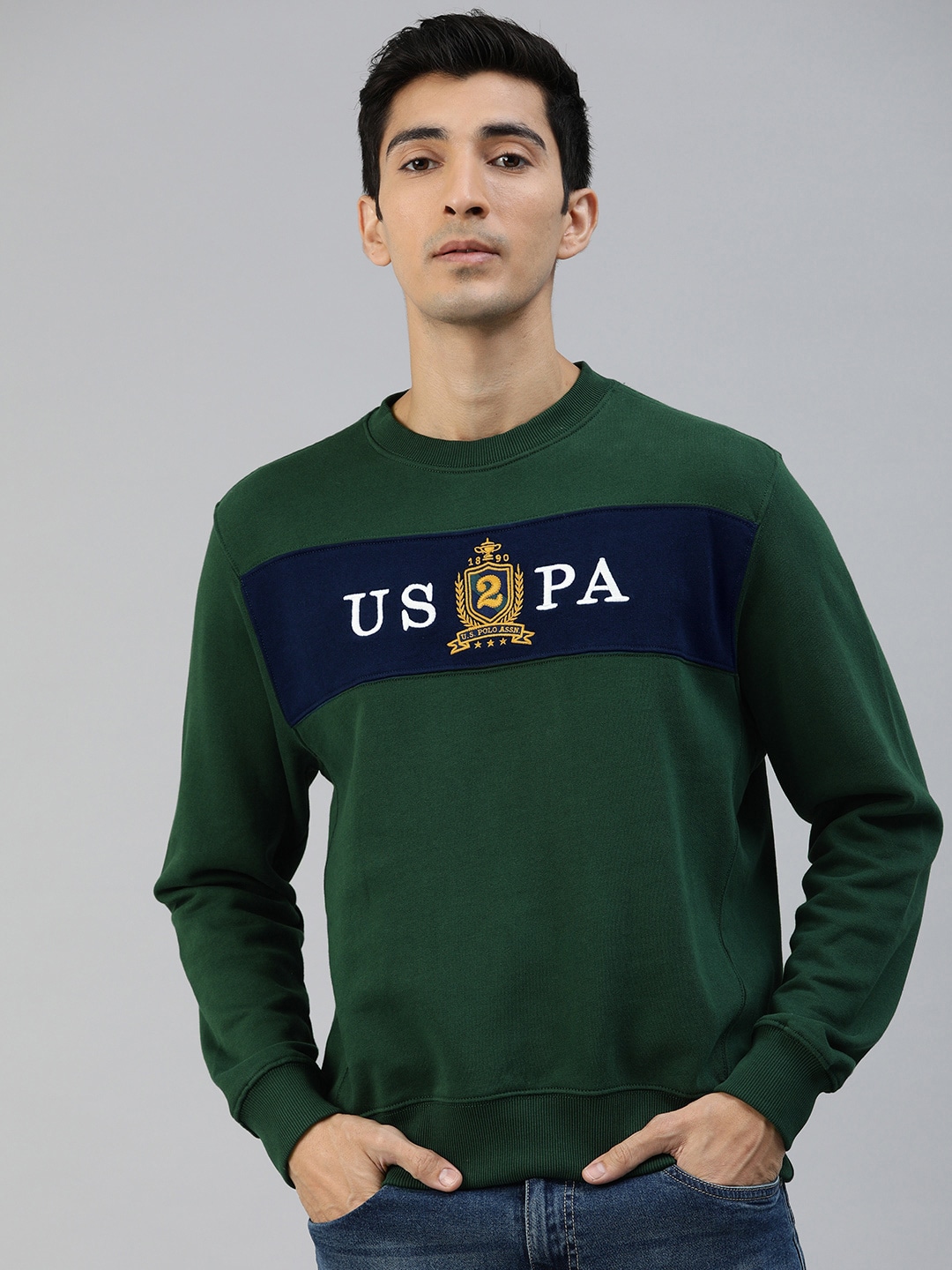 Men Teal Green & Navy Blue Sweatshirt