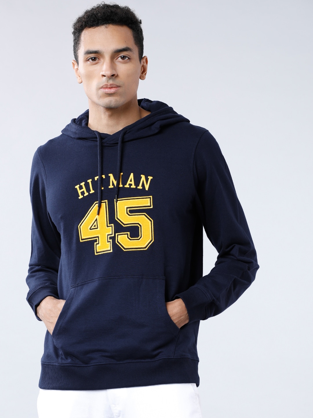 Men Navy Blue Printed Hooded Sweatshirt