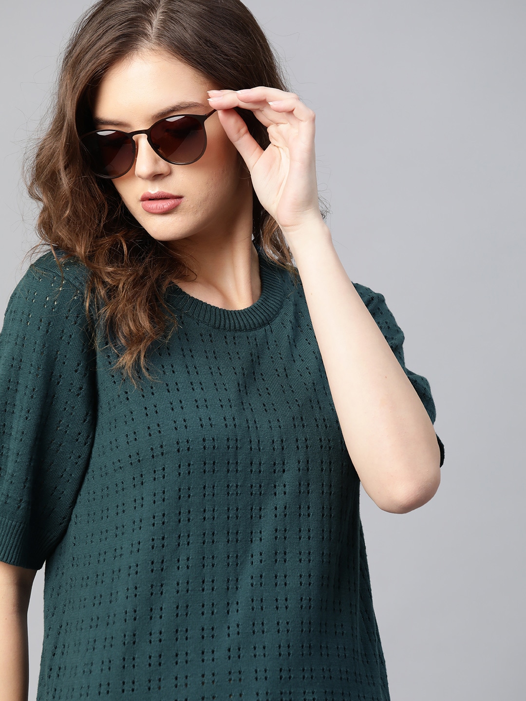 Women Blue Solid Cotton High Rise Crop Flared Jeans